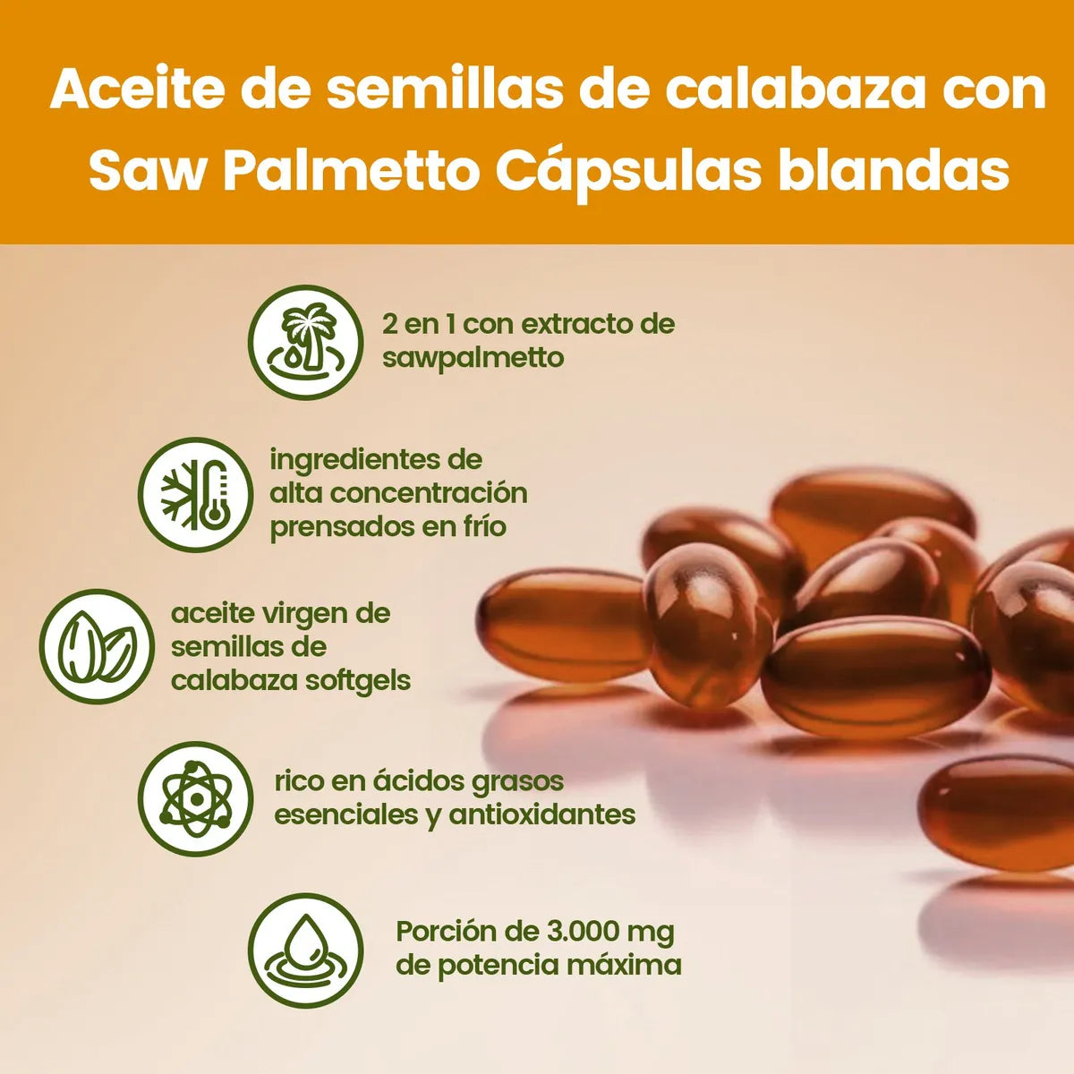 A diferencia de otros suplementos, esta fórmula combina los beneficios del aceite de semilla de calabaza con Saw Palmetto, ofreciendo un soporte integral para tu bienestar físico, capilar y hormonal.